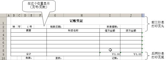 本节我们的例子是一个“记账凭证”模板,如下图所示: