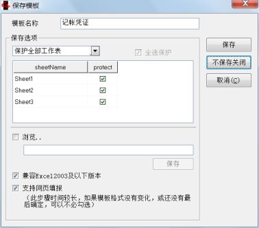 - 保存模板,注意在保存模板窗口上,要勾选“支持网页填报”,如下图所示。