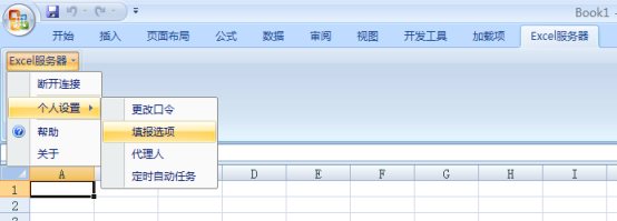 登录客户端,点击菜单栏“Excel服务器”-个人设置-填报选项,如图所示: