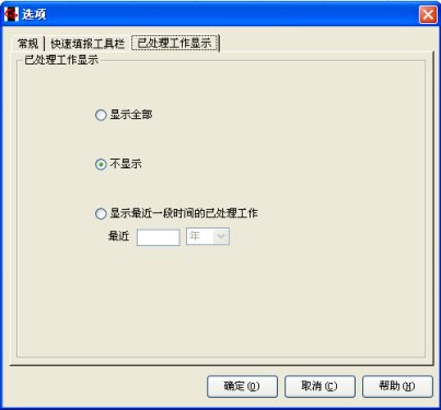 当已处理工作文件夹里积累了大量的已处理任务时,如果希望不显示出来,我们可以通过“个人选项”来配置。配置方法如下: