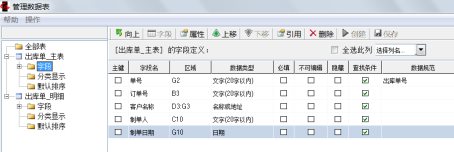 定义两个数据表:“出库单_主表”和“出库单_明细”