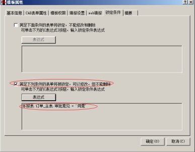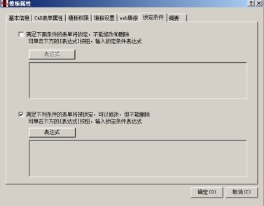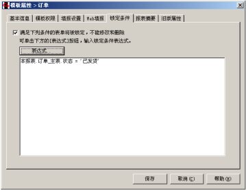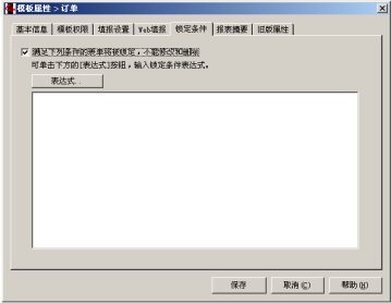 - 切换到“锁定条件”标签,勾选“满足下列条件的表单将被锁定,不能修改和删除”,点击【表达式 … 】按钮。