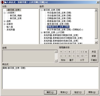 现在来提取上次日报上的累计数,定义表间公式如下: