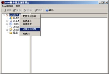 - 在“ Excel 服务器”节点上选择右键菜单【设置系统选项】