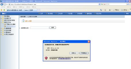 上传时,点击左侧菜单“我的工作台 上传Excel报表”,如果是第一次使用上传功能,会弹出一个提示框,询问是否需要下载“ESCal_cln.CAB”,点击【安装】。(注意:仅需要安装一次,以后这台机器再次使用上传功能时不会再提示)