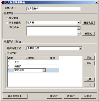 这种组织数据成为树型的方式,称为“多字段分级”,即,树型的层数固定,每一层都是数据表中的一个不同的字段。
