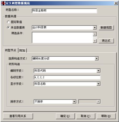 即,根据某个代码字段的不同位数表达数据之间的层次关系。在上边的例子中,“科目代码”的前4位,为第一级,5~6位为第二级,7~8位为三级,最终形成的层次关系为: