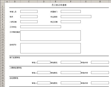 看下面这个例子。我们新建如下模板《员工离职手续流转单》。实际需要的流程是这样的:员工填写转正申请单,部门经理和人事经理审批,部门经理和人事经理都审批同意时,最后再由总经理来审批。