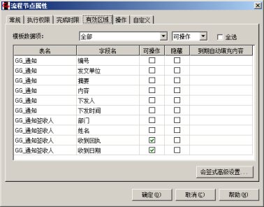 - 切换到“有效区域”标签上,勾选本步的可操作字段。