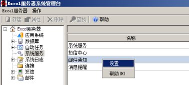 - 在系统管理台主界面左侧选中“系统服务”,右侧选中“邮件通知”,选择右键菜单【设置】。