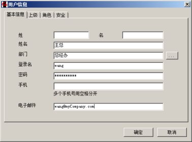 - 输入系统发件人的信息,所有通过 Excel 服务器产生的邮件将以此发件人账号发出。注意, “ 发件人 ” 必须是指定的发送邮件服务上的有效账号,电子邮件地址必须是发件人账号对应的有效地址。