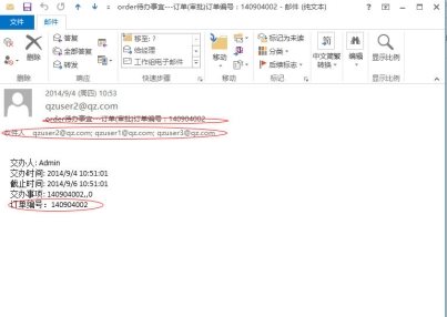 当待办事宜(抢先式)有多个待办人,其中一人办理完成后可以给其他待办人发送已办理完成邮件,通知他们已经办过了。下面我们以订单审批任务为例进行说明: