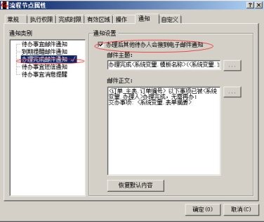 - 设置工作流任务的属性中【 通知】内容 ,使得该任务的待办事宜能够以电子邮件的形式通知办理人。如 下图所示: