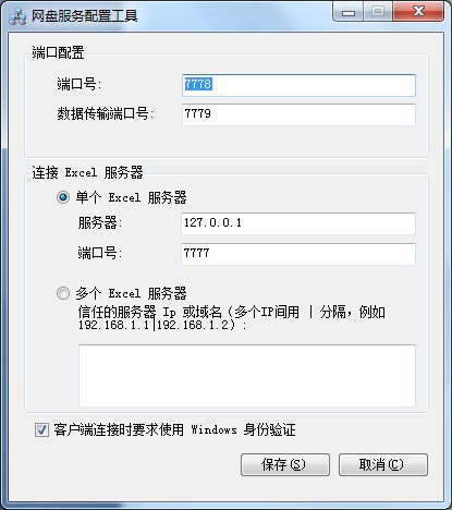 1.点击“Excel服务器2010”菜单组中【网盘服务配置工具】菜单,打开如下窗口。