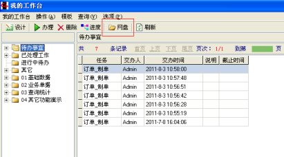用户登录客户端,在我的工作台上可以看到菜单栏里多了一个“网盘”。