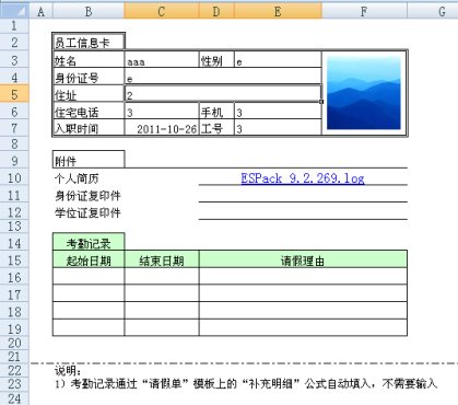 以示例数据库的《员工信息卡》为例,现在填写了一张员工信息卡,如图: