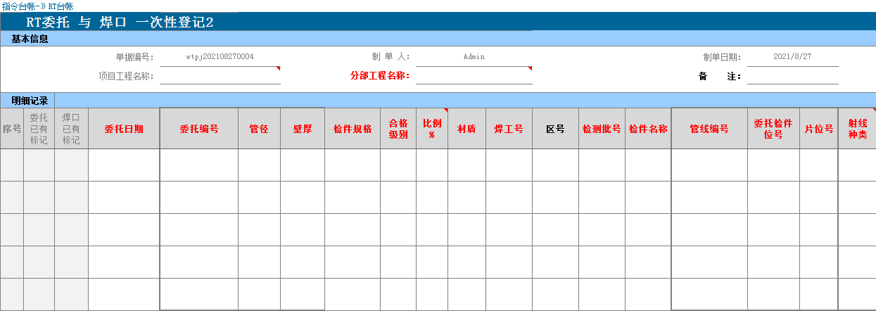 - 3. 方式1,分两步录入数据库,带焊缝的指令台账录入;检测结果登记; 方式2,一次性录入:后期一次性录入焊缝和检测结果信息。