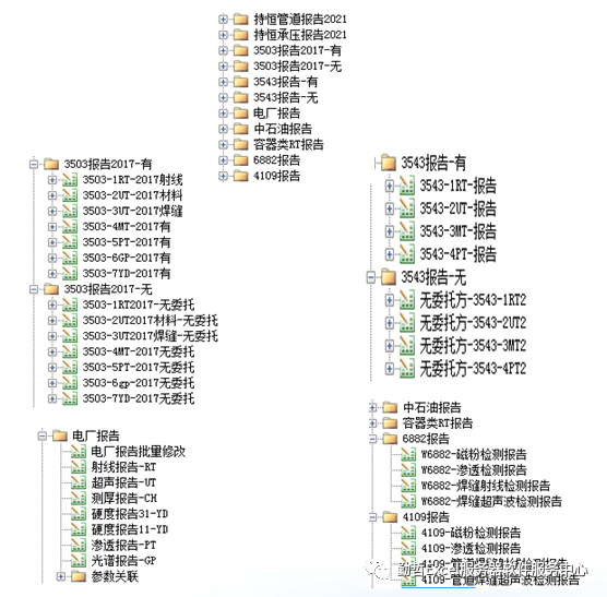 根据检测行业现有的规范标准,主要行业要求,主要检测公司要求,提供当前各种检测方式的常用报告模板:3503报告,3503-2017版报告,3543报告、电厂报告、中石油报告、6882报告、4109报告、承压类报告等。