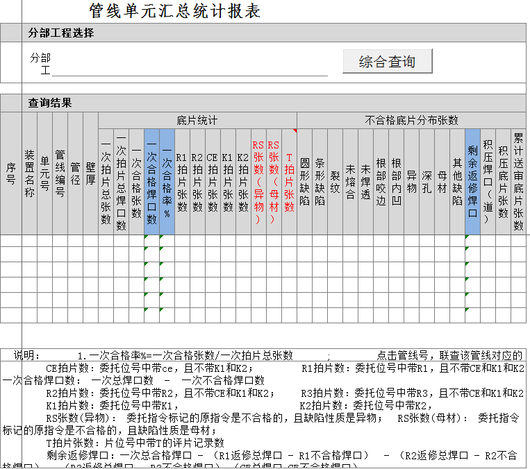 - 1. 结构化的处理数据,最简化的数据录入模式。根据整个报告所用到的数据的特点,把数据区分成三块:检测规格参数;焊口信息;检测结果信息。