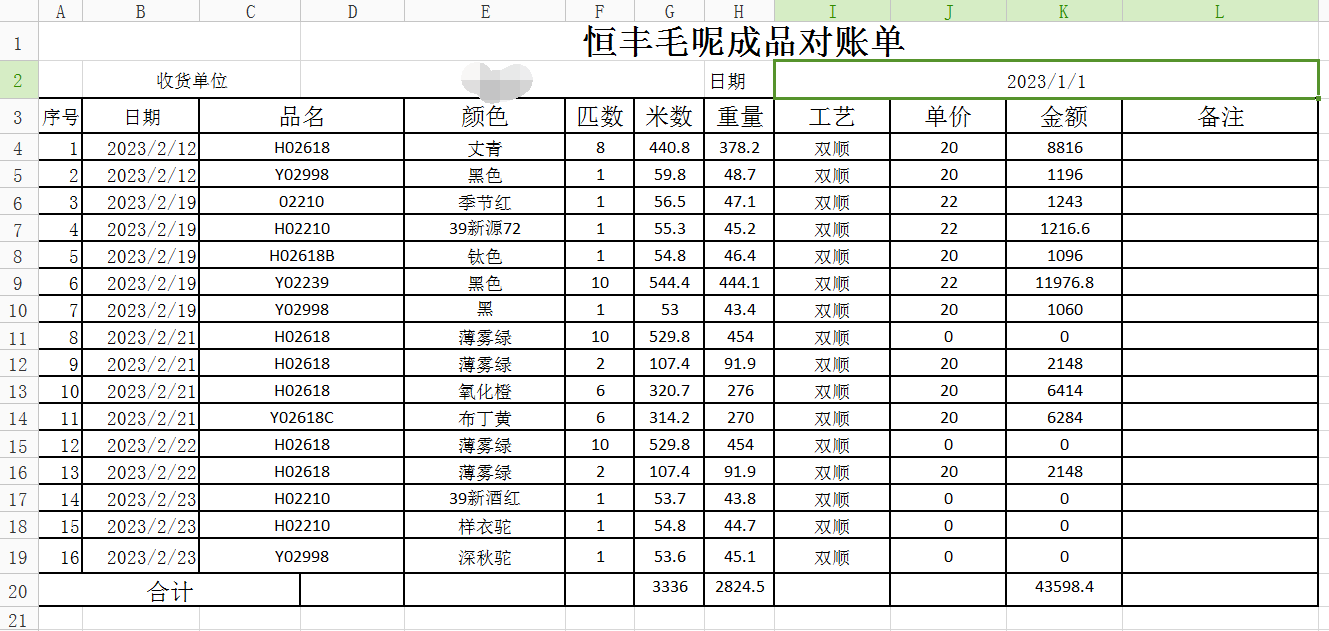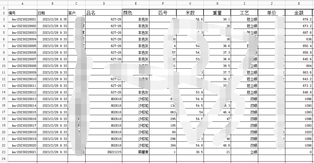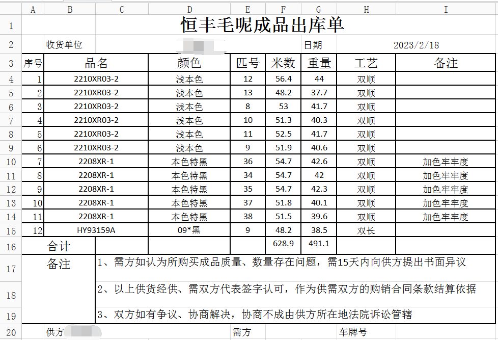 成品出库单:主表收货单位,明细表品名、颜色、批号、工艺等,从工艺流程客户选择,不需要人工重复录入基础数据。