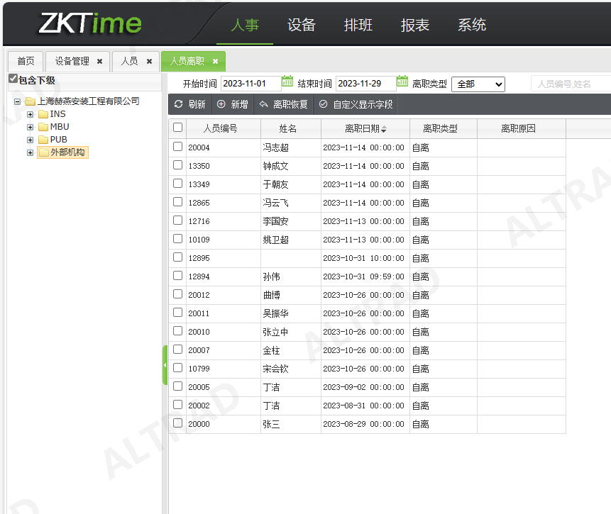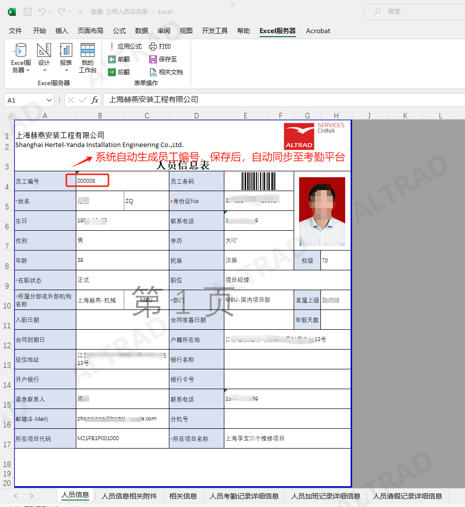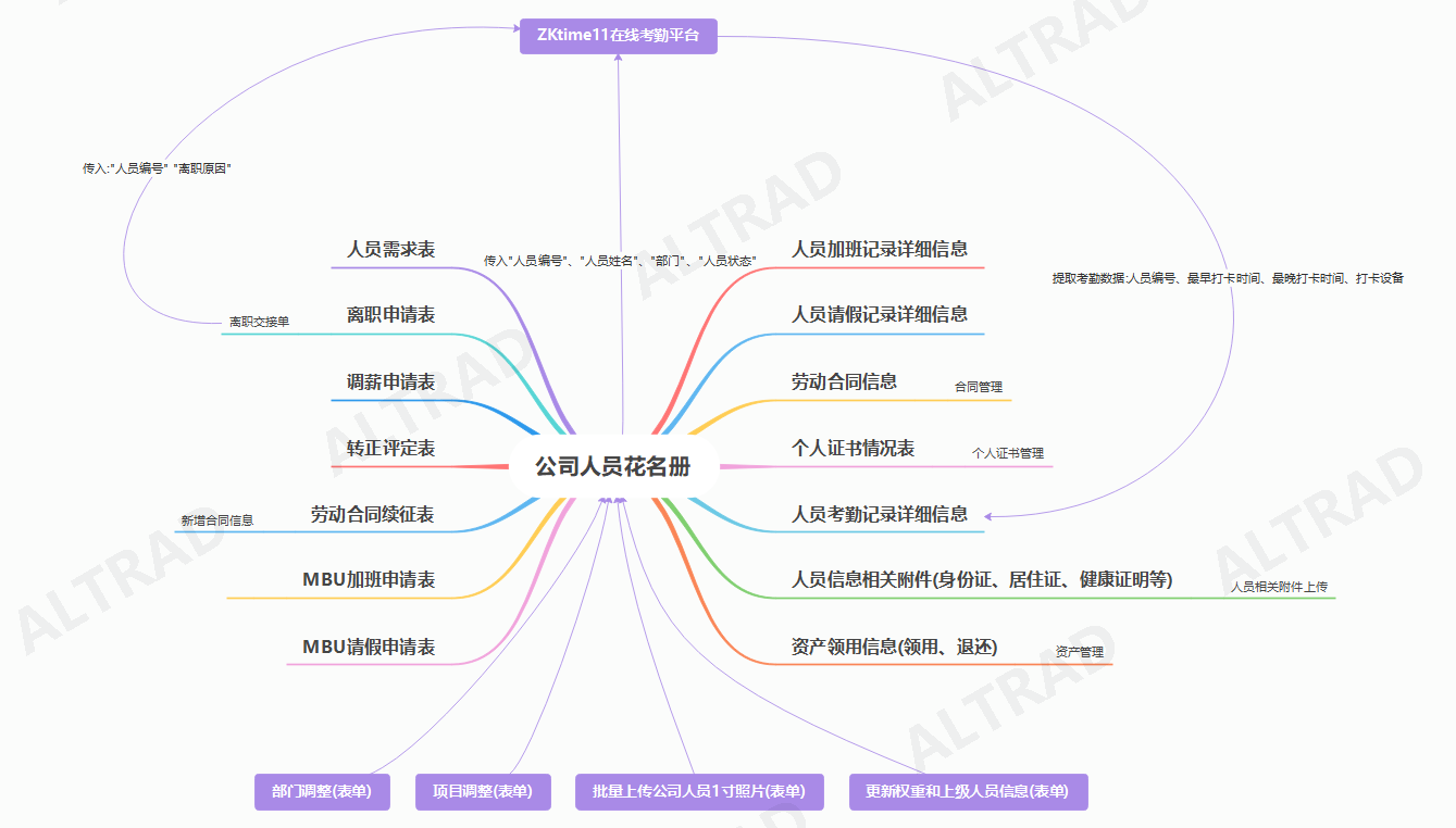 利用勤哲服务器的个性化功能,我们自建了《人员花名册》表单,全国各地各项目通过人事专员通过手机平台扫描身份证,快速身份证信息录入数据至《人员花名册》,系统自动生成员工编号。通过勤哲webapi功能与zktime11进行人员信息同步、部门同步、考勤数据同步、入职离职的同步。从而实现操作勤哲服务器自建的人事管理系统,同步至考勤平台,实现数据无缝衔接。