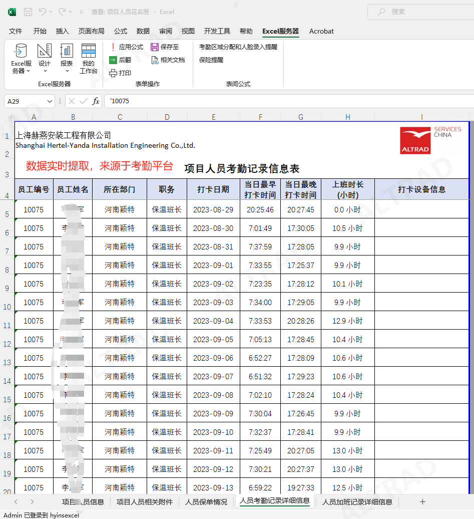 勤哲Excel服务器在施工行业考勤管理中的应用