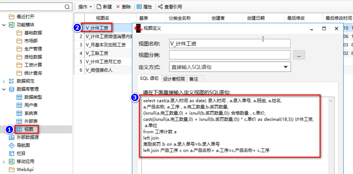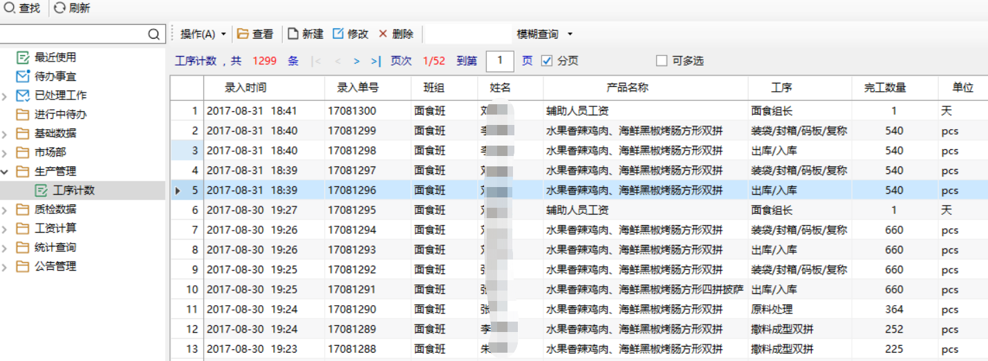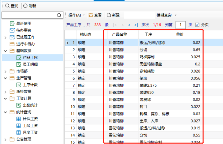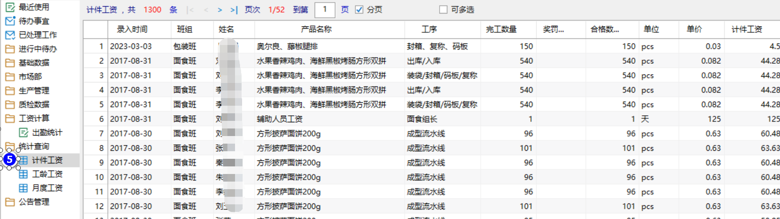 这个步骤系统自动完成,只要上一步录入完工数量,计件工资自动更新,其逻辑是通过一个视图把完工数量和第一步录入的工序工价关联起来,在系统数据库视图里面完成计算,并通过一个自定义报表展现出来。