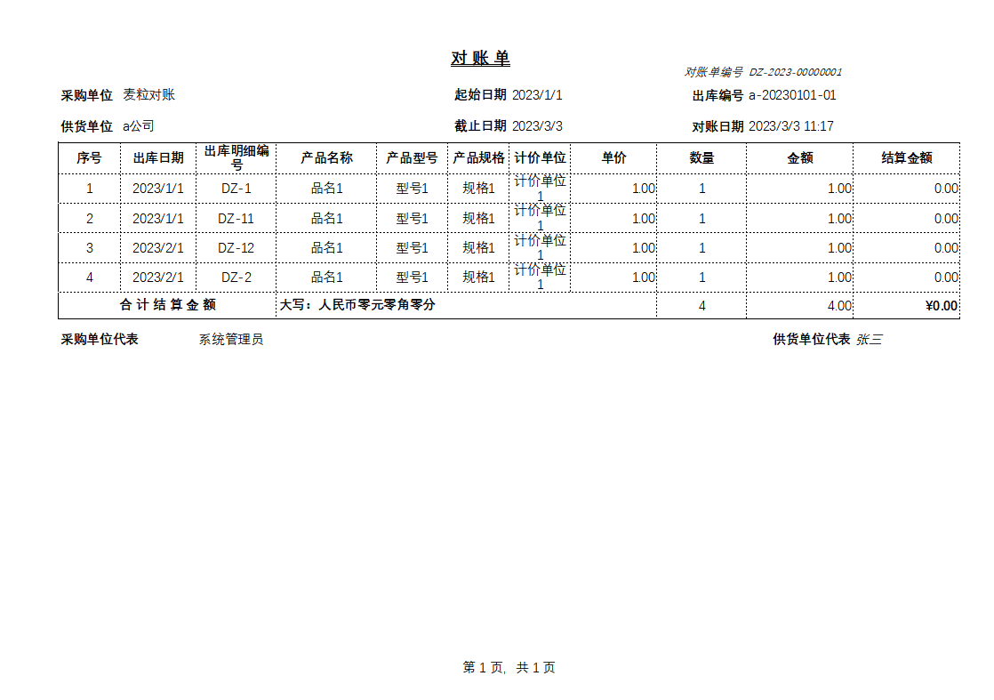 - (3)对账单一键生成,并提交对方核对,支持不限次工作流程核对数据;