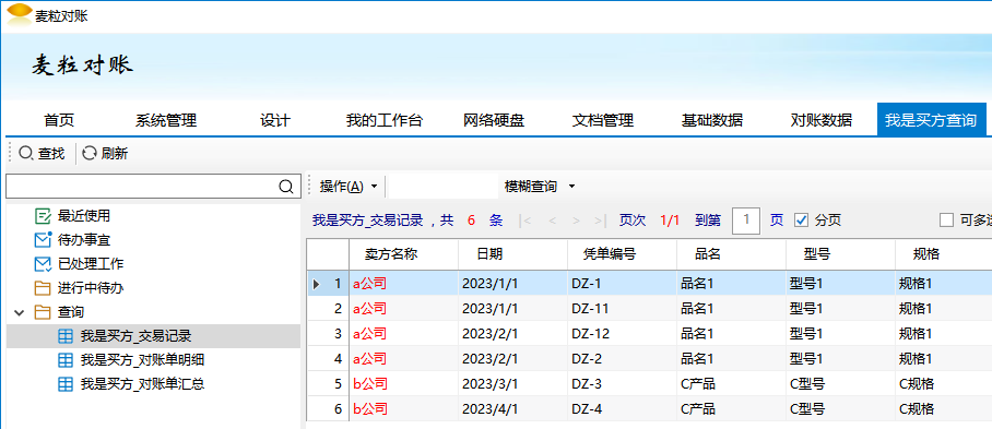 麦粒对账实现买卖双方在线进销存管理及在线对账,解决买卖双方重复录入交易数据的苦恼。买卖一方录入或导入交易数据,另一方即时可以查看,到期一键生成对账单并邮件等多种方式通知对方。支持客户端、浏览器、手机APP同时使用。