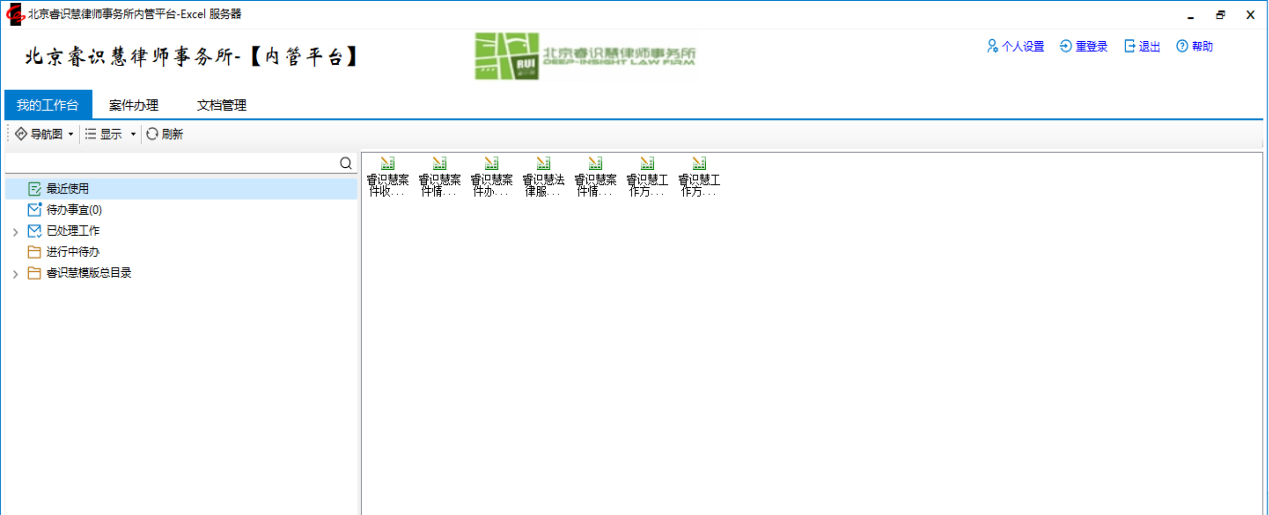 自2015年起,北京睿识慧律师事务所即开始探索信息化体系建设。从设计网站,到开通微信公众号、企业微信,然后尝试搭建服务器平台。在管理工具上,本所希望通过EXCEL软件完善管理流程、数据收集、数据统计等功能。但是,单纯的EXCEL软件并不能实现预期的功能。