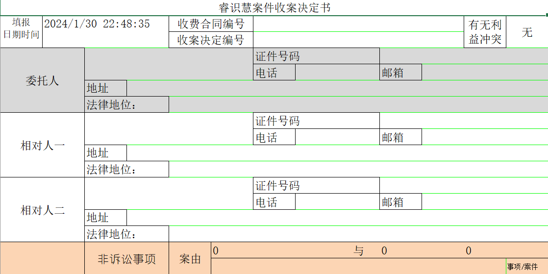 系统自动生成收案决定书编号具有唯一性,一案一号,后续关于该案的流程均与该编号相绑定,在办理该案其他流程时只要输入编号就可以自动获取到该案件的基本信息,从而提高工作效率,案件信息的准确性。