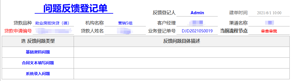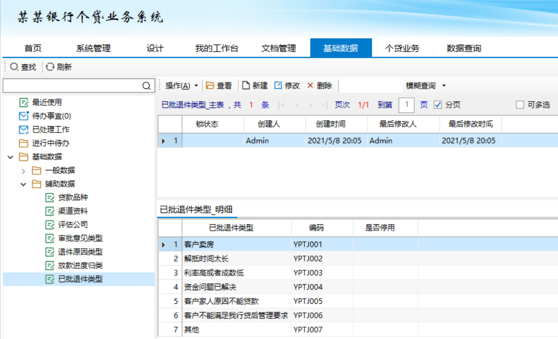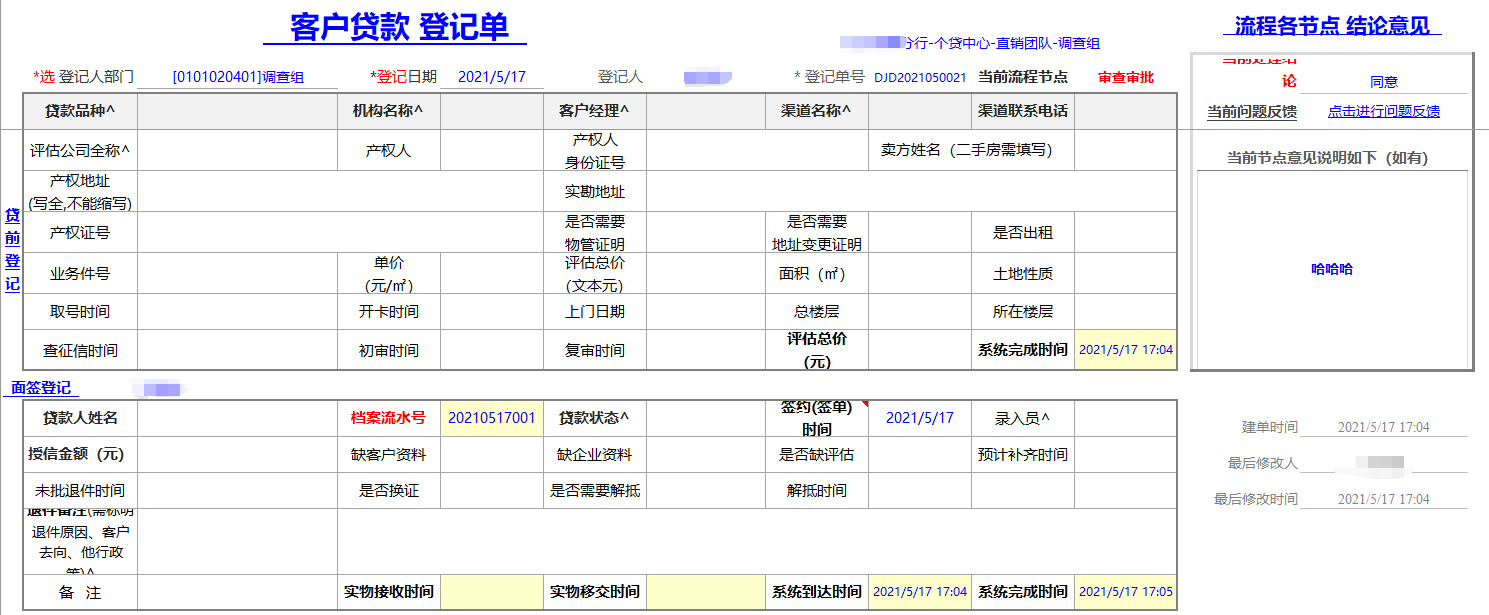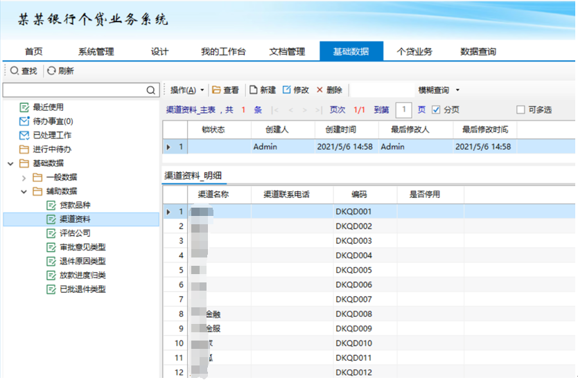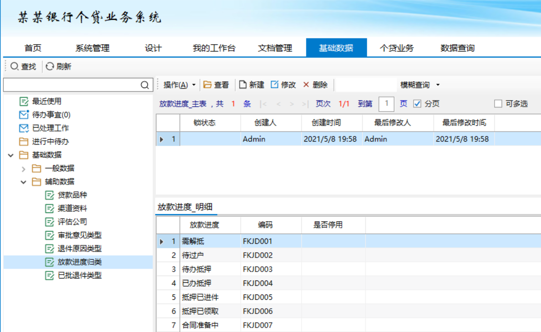 用勤哲平台,根据某银行个贷业务管理流程,定制化设计开发的银行个贷业务管理系统。
