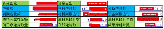 8、 财务数据:资金回笼、资金支出、应收、应付、原料仓、在线库存、成品仓