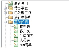目前我公司建立起来的软件模块主要分成基础资料,业务单据,统计报表三大块,基础资料包括客户、员工、供应商三类人群资料。物料、BOM两类物料资料。
