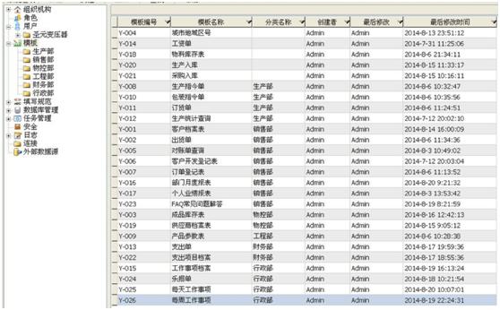 1.根据公司自身的发展需要和管理要求:分别给生产部、销售部、物控部、工程部、财务部、行政部建立了本部门所需要的模板并且严格的分配了权限,本部门的员工只能看得见自己所属部门的模板,同时也根据各部门相应的业务关系和工作流程建立了相应的表间关联,使得各部门之间的数据可以即时共享大大的提高了工作效率。