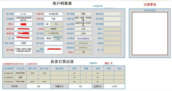 2.客户档案表的建立使得客户的重要信息及时录入,以便查询和调用,本模板也建立了历史订货记录使得员工更加明确该客户的历史订货信息。