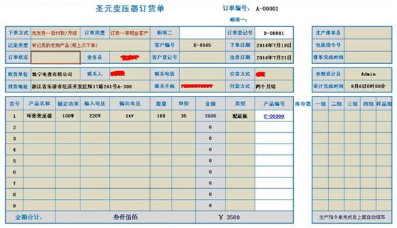 5.订货单把客户预定的产品的类型及数量货款全面的记录下来自动的流向下一个流程,以便发货员及时发货。