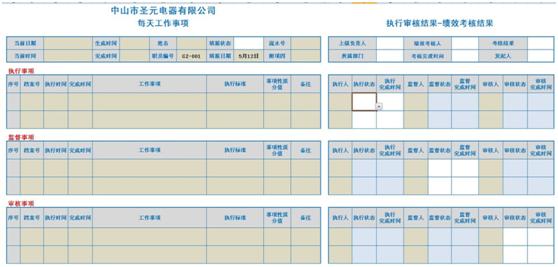 6.根据公司特有的考核制度,制作了一个工作事项及绩效考核表单,使得员工可以详细的填写自己每天的工作记录,领导就可以便捷的进行审查评比。