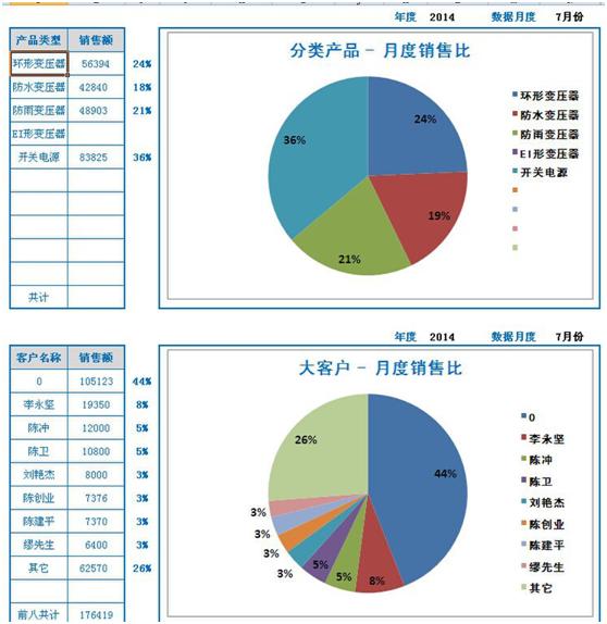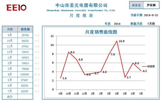 7.月度销售报表用透视图的方式更直观的展现了不同月份,不同产品,不同销售员的销售情况,使用excel服务器更加有效的解决了跨报表提取数据展现在透视图中这一难题。
