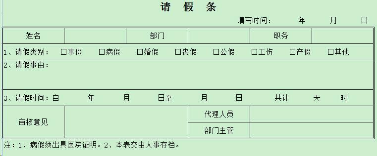 请假单,用户填报由部门审核,审核通过以后对请假人进去考勤管理。