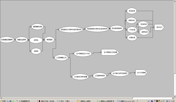 公司为了更好的对生产进行监控,从定单开始,有六个部门的参与,以生产为核心,进行工作流程。