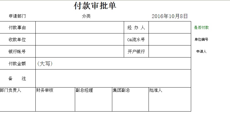 单位要付款时,需做付款手续。根据工程有关资料新建付款申请单,依次填列付款事由等基本信息,单子做好后打印让各部门领导签字审批。当审批结束后开始付款,付款后必须将系统中是否付款的状态改为是,从而能及时汇总付款申请单数据。