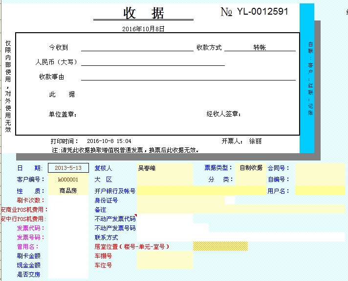 销售管理是我们单位最关键的一步。有新的业务发生时,将客户的基本信息以及选定的房号填列在客户登记表中跟商品房结算表中。根据实际情况开收据,收据的各项注意点都一一填列,如选定银行及区域,