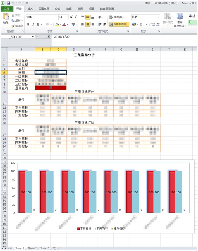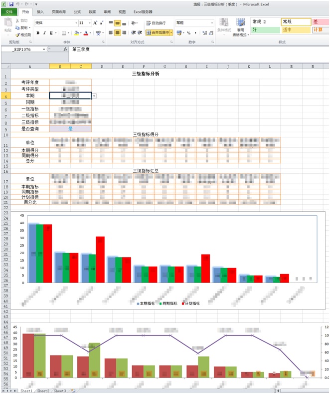 三、指标分析。评价工作完成的是否到位,数据分析才是本系统的亮点和重中之重,前面的所有工作都是在为此处的数据分析做铺垫。系统整合已填报的数据,进行全面分析,得出结论。该系统结合了甘特图、柱形图、曲线图、百分比等图示,量化形象的阐述出指标的完成情况,有进度、有对比,使工作成果一目了然。