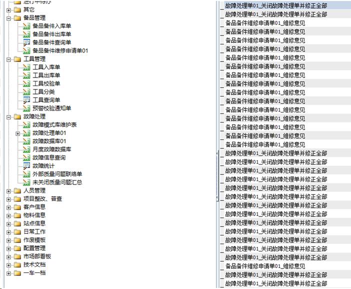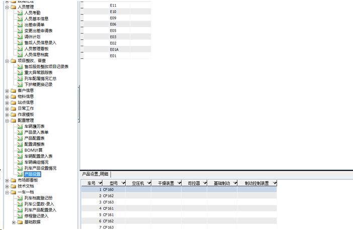 人员车辆记录情况,通过异常汇总表,查看故障情况,需要什么配件,然后由BOM表分解开去采购,保证列车的正常运行,并且对列车的公里数,配件维修记录等进行有效的对比,及时发现问题故障,及时调整修改。