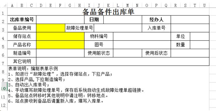 备件出库可以类别到维修,查看维修记录,可以随时查询单个备件一段时间内的详细记录维修几次,状态,是否要进购等通过故障表也可以随时查看哪些备件高故障,来做及时的调整。