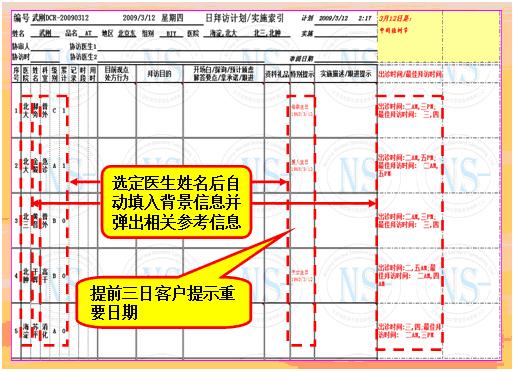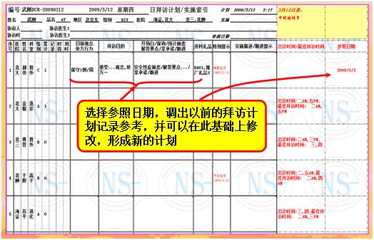最佳计划时间:即,提前多长时间做计划?时间太早了会忘掉或者变化会太大;太晚了如,每个拜访前做,又难免匆忙以致不容易想清楚,而且从时间利用的角度,挤占了有效拜访时间也不是好的选择。因此,如果把医生通常早上8:00上班,下午5:00下班的时间视为代表的工作时间,那么,完成访前计划的最佳时间应该在前一天的下午5:00以后至当天的早上8:00之前,这大概不会有太大的争议。然而,在普通的销售管理环境下,究竟有多少代表是每天在这个时段坚持做这件本应该做的事呢?以前我们无法确切地知道这一点。那么,既然大家都知道应该在这个时间做计划,甚至许多公司已将其列入销售管理制度的工作规范要求。那么,为什么会有人不去做或不是在这一时段做呢?原因或许有多种,但从管理的角度最主要的原因只有一个,那就是: “时间维度”管理并没有管理到这一行为发生的时间点,每个人是不是按照规范要求的时间去做了,管理系统并没有任何引导和监督,以至按不按规范的时间去做甚至做不做都一样,规范也就形同虚设起不到任何作用。本索引在打开进入初始填报后,Excel服务器会首先将此次登陆的实际日期时间填写到“计划”栏上,作为本报表计划填报部分的时间,并且不能更改。日计划前的日期是被此登陆日期锁定的即:如果打开表格填报的时间是早上8:00到24:00之间,那么所填写的日工作计划就一定是登陆日期第二天的,如果打开表格填报的时间在24:00到早上8:00之间,则所填写的日工作计划则一定是登陆日期当天的。它保证了计划填报时间的真实性和合理性。把规章制度渗透到了软件管理中显示出来,从而有效地引导代表在正确的时间做应该做的工作。