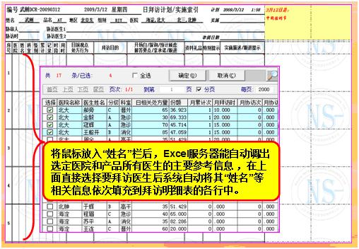 企业可以根据自己产品的实际情况和公司对拜访的具体要求,对本索引“质控维度”的内容进行调整并逐步完善,使其更合乎公司的管理需要。我们说Excel服务器的最大优势就在于它是一个面向最终用户的信息系统设计工具与运行平台。用户可以在此平台上不断积累,使管理无限地向精、准迈进。这种管理的积累以及对业务发展束缚的突破,是任何定制模块软件都无法与之相比的!为了提高计划和实施的填报质量、方便选择拜访的目标医生和为每个医生填写拜访思路,Excel服务器可以方便地从辖区医生信息管理表、月工作计划/实施索引和以往的日拜访计划/实施索引等已经保存的报表中自动调出医生的主要参考信息、选定后自动填充(见图12、图13);自动显示本月特殊日期提示(见图7);自动完成当日工作项目统计(见图8);自动查看过去100天内资源投入明细等等。正如前面所说,大量繁琐的翻阅、查找、计算工作等能够由机器做的,计算机已经通过Excel服务器完成了,需要人来做的只有一步,那就是根据这些信息作出决策!因此,Excel服务器的应用不但提高了计划的准确性、拜访的有效率和延续性,也使计划和实施的填报过程变得十分简便。