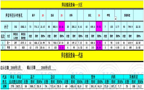 ? 分产品、剂型;分大区、地区、医院、科室、代表等选项进行拜访情况查询分析;