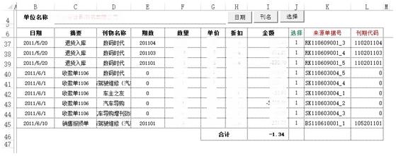 通过公式自动查询(调拨、退货、报损、发货、……)等所有未核减的刊物明细;